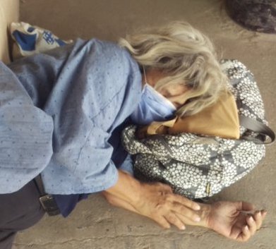 Yesterday, at Tora Prison gate, a brief nap, and then she will carry on.